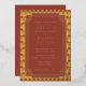 Faire-part de mariage classique élégant, avec un design vintage rouge rouillé art déco et feuille d'or.