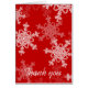 Cette carte de remerciement élégante et festive est parfaite pour des célébrations sur le thème de l'hiver. L'hôtel est décoré d'un arrière - plan rouge audacieux, orné de motifs de flocon blanc, apportant une touche d'élégance et de charme au design. Le texte est personnalisable, vous permettant d'inclure vos noms et un message chaleureux, magnifiquement affiché dans une combinaison de polices cursive fluide et de polices serif classiques. Idéal pour les mariages d'hiver, les fêtes de fin d'année ou les rassemblements saisonniers, cette carte est une façon soignée et élégante d'express votre gratitude avec une touche festive.