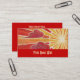 Un or et un soleil orange place et le vent souffle les nuages rouges et roses à travers le ciel. Modèle de carte de visite avec une conception personnalisable d'or, d'orange, de rouge, rose et blanche pour que vous personnalisiez avec votre propres texte, images et idées. L'image créée d'un original a coloré le crayon et le dessin métallique d'encre.