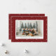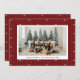 Carte de vacances avec un papier peint rayé rouge et crème arrière - plan avec une photo de famille jumelée avec un accueil de vacances et votre nom et votre année dans une police sans serif.