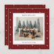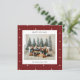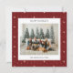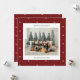 Carte de vacances avec un papier peint rayé rouge et crème arrière - plan avec une photo de famille jumelée avec un accueil de vacances et votre nom et votre année dans une police sans serif.