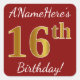 Ce simple autocollant d’anniversaire comporte un message comme "AnameHere’s 16th Birthday!", le "16th" ayant une apparence de couleur d’inspiration fausse/imitation or, sur un arrière - plan de couleur rouge. Le nom peut être personnalisé. Des autocollants comme ceux-ci pourraient peut-être être un cadeau pour quelqu'un qui célèbre son seizième anniversaire, ou ils pourraient peut-être être utilisés comme décorations lors d'une fête d'anniversaire. [~Z0000245]