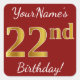 Ce simple autocollant d’anniversaire comporte un message comme "22e anniversaire de YourName!", avec le "22e" ayant une apparence fausse/imitation couleur d’inspiration or, sur un arrière - plan de couleur rouge. Le nom peut être personnalisé. Des autocollants comme ceux-ci pourraient peut-être être un cadeau pour quelqu'un qui fête son vingt-deuxième anniversaire, ou ils pourraient peut-être être utilisés comme décorations lors d'une fête d'anniversaire. [~Z0000245]