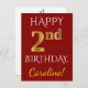 Ce design simple et personnalisé de carte postale d'anniversaire comporte le message "HAPPY 2nd BIRTHDAY", avec le "2nd" ayant une apparence fausse or. L'avant est également orné d'un nom personnalisé et d'un arrière - plan rouge. Le dos contient un message de bienvenue customisé pour l'anniversaire, ainsi que l'adresse personnalisable du destinataire de la carte postale. Il pourrait être envoyé à quelqu'un qui célèbre son deuxième anniversaire. [~Z0000071]