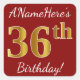 Ce simple autocollant d’anniversaire comporte un message comme "AnameHere’s 36th Birthday!", le "36th" ayant une apparence de couleur d’inspiration fausse/imitation or, sur un arrière - plan de couleur rouge. Le nom peut être personnalisé. Des autocollants comme ceux-ci pourraient peut-être être un cadeau pour quelqu'un qui célèbre son trente-sixième anniversaire, ou ils pourraient peut-être être utilisés comme décorations à une fête d'anniversaire. [~Z0000245]