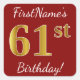 Ce simple autocollant d’anniversaire comporte un message comme "61e anniversaire de FirstName!", avec le "61e" ayant une apparence fausse/imitation couleur d’inspiration or, sur un arrière - plan de couleur rouge. Le nom peut être personnalisé. Des autocollants comme ceux-ci pourraient peut-être être un cadeau pour quelqu'un qui célèbre son soixante et unième anniversaire, ou ils pourraient peut-être être utilisés comme décorations lors d'une fête d'anniversaire. [~Z0000245]
