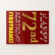 Cette conception amusante et simple de puzzle d'anniversaire comprend le message "HAPPY 72nd BIRTHDAY", avec le "72nd" ayant une apparence de couleur fausse/imitation or. Il porte également un nom personnalisé et un arrière - plan de couleur rouge. Ce pourrait être une façon amusante et spéciale de délivrer un message d'anniversaire personnalisé à quelqu'un qui célèbre son soixante-dix-deuxième anniversaire. [~Z0000200]