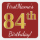 Ce simple autocollant d’anniversaire comporte un message comme "84e anniversaire de FirstName!", avec le "84e" ayant une apparence fausse/imitation couleur d’inspiration or, sur un arrière - plan de couleur rouge. Le nom peut être personnalisé. Des autocollants comme ceux-ci pourraient peut-être être un cadeau pour quelqu'un qui célèbre son quatre-vingt-quatrième anniversaire, ou ils pourraient peut-être être utilisés comme décorations lors d'une fête d'anniversaire. [~Z0000245]