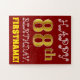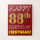 Cette conception amusante et simple de puzzle d'anniversaire comprend le message "HAPPY 88th BIRTHDAY", avec le "88th" ayant une apparence de couleur fausse/imitation or. Il porte également un nom personnalisé et un arrière - plan de couleur rouge. Ce pourrait être une façon amusante et spéciale de délivrer un message d'anniversaire personnalisé à quelqu'un qui célèbre son quatre-vingt-huitième anniversaire. [~Z0000200]