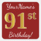 Ce simple autocollant d’anniversaire comporte un message comme "91st Birthday de YourName!", avec le "91st" ayant une apparence fausse/imitation couleur d’inspiration or, sur un arrière - plan de couleur rouge. Le nom peut être customisé. Des autocollants comme ceux-ci pourraient peut-être être un cadeau pour quelqu'un qui fête son quatre-vingt-dix-unième anniversaire, ou ils pourraient peut-être être utilisés comme décorations lors d'une fête d'anniversaire. [~Z0000245]