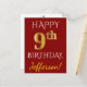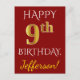 Ce design simple et personnalisé de carte postale d'anniversaire comporte le message "HAPPY 9th BIRTHDAY", avec le "9th" ayant une apparence fausse or. L'avant est également orné d'un nom personnalisé et d'un arrière - plan rouge. Le dos contient un message d'anniversaire personnalisé, ainsi que l'adresse personnalisable du destinataire de la carte postale d'anniversaire. Il pourrait être envoyé à quelqu'un qui célèbre son neuvième anniversaire. [~Z0000071]