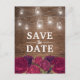 Cartes de save the date pour un mariage champêtre chic avec un fond de grange en bois, un bouquet de roses florales rouge burgundy marsala, des pots Mason suspendus à des guirlandes lumineuses et un modèle moderne de save the date. Pour une personnalisation plus poussée, veuillez cliquer sur le bouton "Personnaliser" pour modifier ce modèle. Tous les styles de texte, couleurs et tailles peuvent être modifiés pour répondre à vos besoins. Vous trouverez d'autres articles de mariage assortis dans ma boutique www.zazzle.com/special_stationery, cependant si vous ne trouvez pas ce que vous cherchez, veuillez me contacter.
