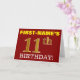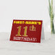 Ce design de carte de voeux d’anniversaire comporte un message comme "FIRST-NAME’S 11th BIRTHDAY!", avec le "11th" ayant une apparence de couleur fausse/imitation or. Le nom du destinataire sur le devant peut être personnalisé, et l’arrière - plan avant est de couleur rouge. Il comporte également un message d'anniversaire personnalisé à l'intérieur. Une carte de voeux comme celle-ci pourrait peut-être être remise à quelqu'un pour célébrer son onzième anniversaire. [~Z0000184]