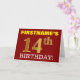 Ce design de carte de voeux d’anniversaire comporte un message comme "FIRSTNAME’S 14th BIRTHDAY!", le "14th" ayant une apparence de couleur fausse/imitation or. Le nom du destinataire sur le devant peut être personnalisé, et l’arrière - plan avant est de couleur rouge. Il comporte également un message d'anniversaire personnalisé à l'intérieur. Une carte de voeux comme celle-ci pourrait peut-être être remise à quelqu'un pour célébrer son quatorzième anniversaire. [~Z0000184]