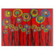Conception de planche à découper de fleurs, géniale et artsy lunatique de fleur sur un arrière - plan rouge. Intelligente, audacieuse et colorée cette planche à découper fait une déclaration.