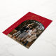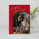 Red Modern Script Happy Holidays Arch 2 Photo Foil Holiday Card présente un script amusant et moderne sur une photo voûtée, ainsi qu'une deuxième photo à l'arrière et la chambre pour votre message.