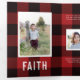 Ce magnifique design triplé est orné d'un arrière - plan de buffle rouge et noir et d'une typographie audacieuse. L'accueil sur la couverture dit simplement "joie à tous" et continue à l'intérieur avec "foi" et "famille". Lorsque vous ouvrez le premier panneau, vous voyez une photo carré unique avec votre texte de vacances principal. Lorsque vous ouvrez la carte, vous voyez une photo à gauche, une photo à droite, et au milieu, trois petites photos carrés chacune avec du texte personnalisé. Le dos de la carte est vide mais vous pouvez facilement ajouter une autre photo ou plus de texte. Ce design est un choix parfait pour un message chaleureux et sincère de joie de Noël. La mise en page multi-photo vous permet de télécharger un total de SEPT de vos photos de famille préférées en différentes tailles.