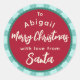 Un autocollant de style postal de Noël pour les cadeaux. Le design a des rayures vert menthe autour de la frontière en turquoise et turquoise et il dit "De Père Noël" en face, avec un arrière - plan rouge festif. L'autocollant est conçu pour ressembler à une marque postale ou à un sceau du pôle Nord. Ce serait parfait pour les cadeaux pour enfants étiquettes, décorer les cadeaux de Noël ou sceller les enveloppes sur une carte de Noël.