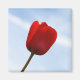 Tulipe rouge vif contre un ciel bleu clair.