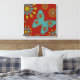 Rouge Turquoise Fleurs vertes Papillon Toile