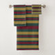 Serviette de bain Ensemble de trois équipements de salle de bain et décoration de maison accessoire avec Gold Green and Red Christmas Candé Art rayé dessin d'illustration par TheFabricSeal à Zazzle. #zazzlemade http://www.thefabricseal.zazzle.com Cet élégant cadeau de vacances vintage envelopper les couleurs et le design inspirés est rempli de rayures vives et audacieuses à la fois horizontales et verticales linéaires motif avec l'influence de l'ancien moderne mais classique, simple minimaliste minimaliste, vieux rétro art pop, folkart folk art, country victorien avec charmant et festif striping linéaire. Joyeux Noël et Joyeuses fêtes