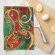 Rouge Vert Floral Noël Vacances Serviette de cuisi