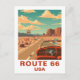 Parcourez l'emblématique Route 66 avec cette carte postale vintage avec une voiture classique sur la route. S'étendant de Chicago à Père Noël Monica, la Route 66 est la route américaine la plus emblématique, remplie d'aventure, de nostalgie et de vues innombrables sur l'autoroute. Avec son design rétro, cette carte postale capte la liberté et l'excitation de l'exploration de la route mère dans le style