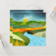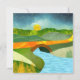 Paysage Abstrait d'une rivière passant sous un pont de pierre avec des collines et une route dorée aux couleurs et textures audacieuses.
