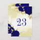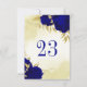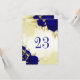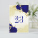 Belle carte de numéro de table mariage avec fleurs bleues royales et feuilles or. Les détails de la parties scintillant d'or sont simulés. POUR PLUS DE PRODUITS CORRESPONDANTS voir la collection ci-dessus ou contactez-moi