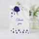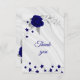 fleurs royales bleues romantiques et carte de remerciements en marbre botanique feuille gris argenté. Les détails de la parties scintillant sont simulés