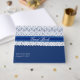 Élégant panneau d'invité bleu royal avec des graphiques en dentelle blanche, sur la moitié supérieure, avec un ruban bleu clair. Personnalisez le texte pour votre journée spéciale.