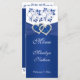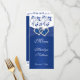 Cette carte de menu à mariage floral bleu et blanc royal comporte un ruban IMPRIMÉ avec une paire de parties scintillant IMPRIMÉE FAUX et un broche à coeurs unis en diamant qui correspond au faire-part de mariage ci-dessous. Si vous avez besoin d'aide pour customiser cette information avec vos détails ou si vous avez besoin d'autres articles correspondants, veuillez envoyer un courriel à niteowlstudio@gmail.com.