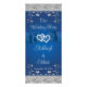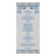 Cette romantique carte de menu à mariage floral bleu et gris argenté a l'image d'une paire de coeurs unis au-dessus d'un ruban bleu royal et d'une image arc courant sur la largeur de la carte. Il y a une bordure en argent simulée en haut et en bas du menu avec une zone de texte bleu royal sur le devant qui a les noms de la mariée et du marié, et la date mariage en gris sous le ruban, avec "Notre menu Mariage" en gris au-dessus du ruban. Le dos est gris avec des fleurs bleues royales arquées sur les détails du menu en bleu. Si vous avez besoin d'autres articles correspondants, envoyez votre demande par courriel à niteowlstudio@gmail.com ou utilisez la fonction conversation Zazzle pour entrer en contact.