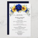 Royal Blue Rustic Sunflower Menu Mariage moderne