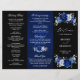 Élégant programme de mariage à thème bleu royal blanc argent avec l'élégant bouquet de bleu royal, marine, argent, blanc pur bourgeons de fleurs roses et sauge vert eucalyptus feuilles. Veuillez me contacter pour toute aide sur la personnalisation ou si vous avez besoin d'un autre produit avec ce design.