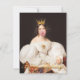 Remix d'une peinture vintage d'une femme portant une couronne d'or avec une gomme à bulle rose éclatante.