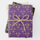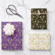 Royal Coronation 2023 Ogee Motif Wrapping Papier pour célébrer le couronnement royal du roi Charles III et de la reine Camilla. Les 3 feuilles de papier d'emballage ont un beau motif Ogee répétitif avec un thème de couleur or. Chaque feuille a un arrière - plan de couleur différent : noir, blanc et violet.