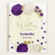Fleurs royales romantiques violet & blanc avec wedding planner botanique feuille or Les détails de la parties scintillant sont simulés.