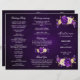 Élégant programme triplé à thème mariage de violet royal avec bouquet élégant de violet royal, Indigo, or, bourgeons de fleurs roses couleur jaune et des feuilles d'eucalyptus. Veuillez me contacter pour toute aide sur la personnalisation ou si vous avez besoin d'un autre produit avec ce design.