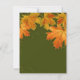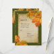 Correspondance de la carte de réponse RSVP pour retourner à la mariée pour un compte d'invités précis. Inclut des enveloppes blanches gratuites. Un arrière - plan vert de forêt profond et riche fait que le design est vraiment pop. Ce design mariage de feuilles d'automne aux couleurs brillantes a été créé à partir d'oeuvres peintes à la main par Audrey Jeanne Roberts, puis dessinées graphiquement dans ce faire-part de mariage simple, moderne et propre, avec des produits assortis pour les douches, les réceptions et les événements formels. 5 feuilles d'automne qui transforment les couleurs du rouge vif à l'orange, l'or et l'avocat vert tumble des arbres et sont disposés sur une bordure de feuille d'or de style art déco simple, papier parchemin usé vieilli style vintage qui est taché de thé et confetti comme parties scintillant en faux or, éclaboussures pour une touche finale. Au contraire, les feuilles et les pois scintillants et scintillants.