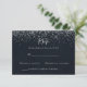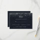 Cette réponse RSVP calligraphiée avec confettis argentés est parfaite pour un mariage rustique. Le design simple et élégant présente une typographie classique et élégante avec un fond bleu et des confettis argentés.