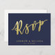 NewParkLane - Elégante carte postale, avec 'RSVP' dans une élégante typographie de script en faux or, contre un arrière - plan bleu marine. Facile à customiser à Zazzle avec vos propres noms, date ou autre texte pour un design personnalisé. Tous les styles de texte, couleurs, tailles peuvent être modifiés selon vos besoins. Vous pouvez également changer la couleur arrière - plan en n'importe quelle couleur. Consultez cette collection de scripts de brosse d'or pour trouver les éléments correspondants, ou d'autres devis. Avez-vous des souhaits particuliers en matière de design personnel? N'hésitez pas à me contacter.