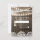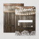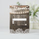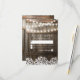 Carte de réponse de mariage avec guirlande lumineuse et Baby's Breath | Fond de tonneau en chêne de grange rustique, lumières scintillantes, baby's breath et texte de mariage moderne. Trouvez d'autres cartes de réponse de mariage de grange sur http://www.zazzle.com/special_stationery