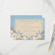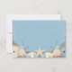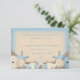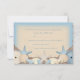 Une belle carte de réponse RSVP de mariage de destination avec un thème de plage exotique. Un joli motif de texture de sable dans des tons de crème neutres et des nuances de bleu océan est parsemé de nombreuses petites pierres de plage. Sur les pierres, il y a une variété de coquillages, d'oursins, d'étoiles de mer et de perles.