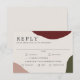 Une carte de réponse de mariage au style artistique qui transmet une élégance simple, ce design présente une riche palette de couleurs automnales avec des formes abstraites de couleur rouge vin bordeaux, terre cuite et vert chasseur le long des bords du design. Un fond écru se marie bien avec les couleurs d'automne. La police de caractères est nette et élégante dans sa simplicité. Cette carte de RSVP comprend un modèle de texte qui propose des choix de menu pour que vos invités sélectionnent leur préférence de repas. Vous pouvez personnaliser les choix avec votre propre formulation ainsi que la date limite de réponse requise.