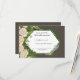 Cette carte RSVP est dotée d'un arrière - plan terreux et foncé à l'atmosphère douce et rustique. Facile à lire, encadré de verdure luxuriante, de délicates roses blanches, fougères et lichens.