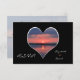 Cette Faire-part de mariage RSVP présente un coucher de soleil magnifique à l'intérieur d'un coeur. A gauche du coeur est R.S.V.P. et à droite du coeur sont les noms du couple. Sur le dos est un coucher de soleil plus subtil où les détails rsvp sont placés. Une belle faire-part de mariage rsvp. Copyright henishouseo