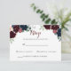Ce RSVP floral coloré boho luxe est parfait pour un mariage rustique. Le design présente des fleurs élégantes à l'aquarelle bleue, bordeaux, rose et blush avec un feuillage vert.