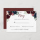 Cette réponse RSVP florale colorée boho luxe est parfaite pour un mariage rustique. Le design présente d'élégantes fleurs aquarelles bleues, bordeaux, roses et blush avec un feuillage vert.