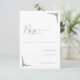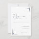 Cette élégante carte de réponse de mariage présente un design minimaliste avec un espace blanc généreux, créant une apparence propre et sophistiquée. La palette de couleurs monochrome noir sur blanc met en valeur la simplicité et la modernité. Des icônes géométriques encadrent le texte "RSVP" en écriture cursive, ajoutant un intérêt visuel subtil, tandis que les polices sans-serif directes assurent la clarté pour que les invités indiquent leur état de présence. Parfaite pour les couples recherchant une touche discrète mais raffinée pour leur papeterie de mariage, cette carte transmet une atmosphère d'élégance et de sophistication discrètes.